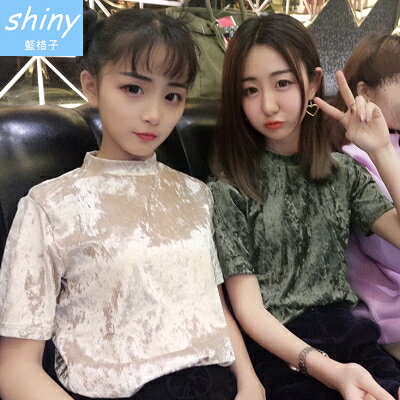 None, ~399超商免運 599折30 輸入代號 M7OJ-IPQJ-ZB18-R5YO【V1595】shiny藍格子-閃亮注目.立領鑽石絨面薄款短袖上衣。在樂天市場的shiny藍格子有最棒的商品,是您省錢的最佳選擇。